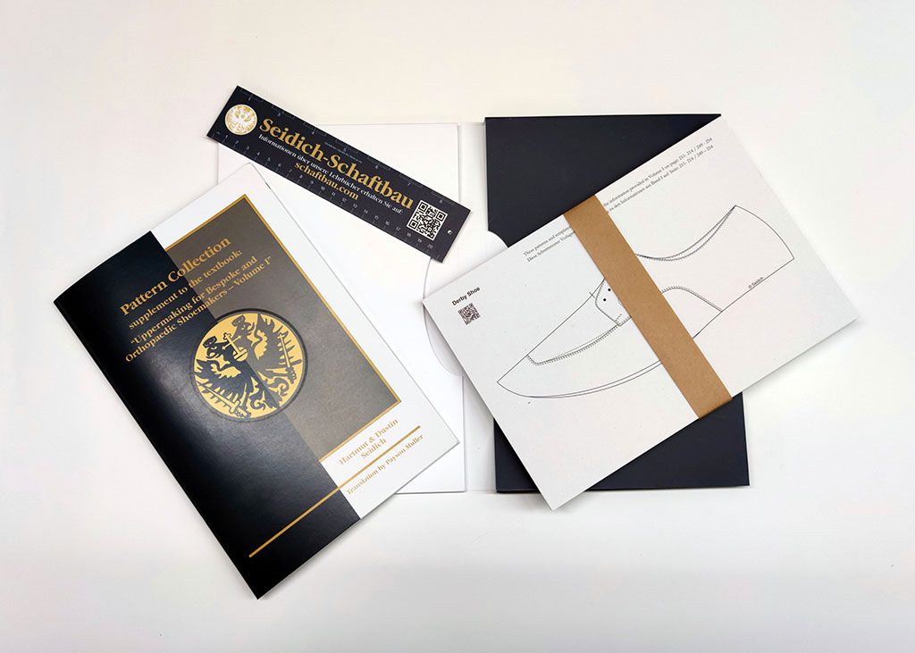 The pattern collection is a supplement to the textbook: “Uppermaking for Bespoke and Orthopedic Shoemakers – Volume I”.