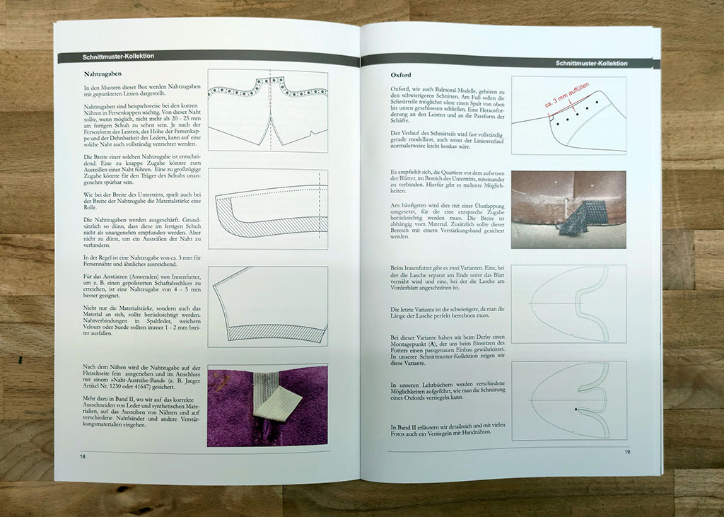 Volume I of our textbooks focuses on patternmaking. Comprehensive but easy to understand, we explain in detail the patternmaking and design of uppers comprising 300 pages in A4 format with 400 photos, 200 drawings and 44 illustrations from historical shoemaking technical manuals.