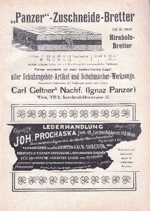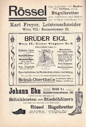 Historische Werbeanzeigen aus Fachliteratur des Schuh- und Orthopädieschuhmacher Handwerks